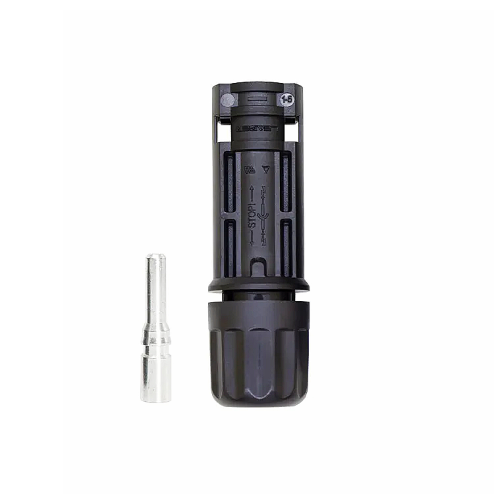 Konektor MC4 samec (Male) určený pro propojení kabelů ve fotovoltaických systémech s napětím až 1500 V DC. Vhodný pro vodiče s průřezem 4–6 mm2 a proudové zatížení do 40 A. Odolné tělo z PPO/PC a pocínované měděné kontakty zajišťují spolehlivé spojení s nízkým přechodovým odporem a krytím IP68. Určeno pro profesionální montáž pomocí krimpovacích kleští.