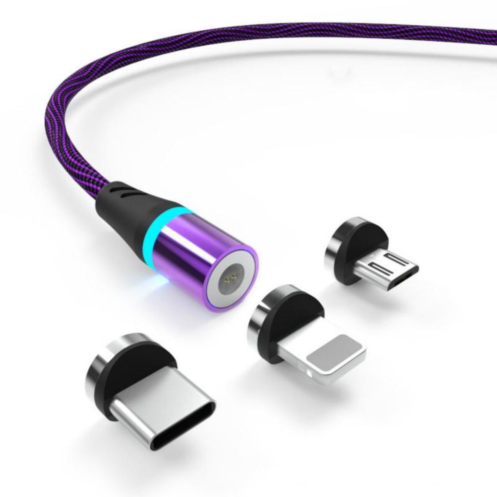 Parametry produktu W-Star KBMG2BKV1 -Magnetický USB kabel 3v1 USBC, Lightning, micro USB, 3A 1m černá fialová