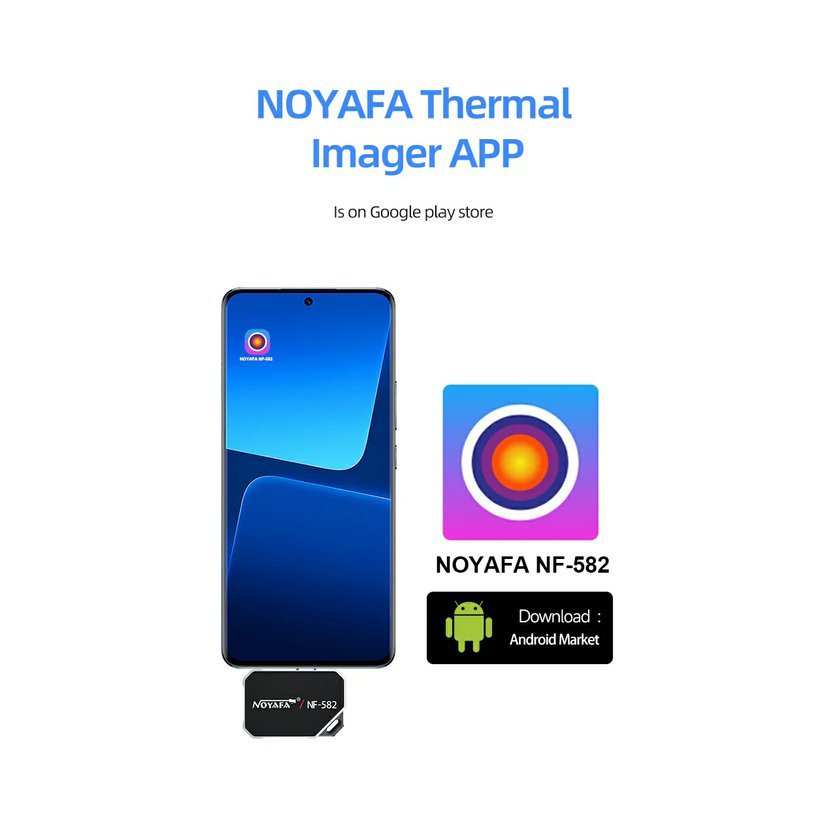 Mobilní aplikace NOYAFA Thermal Vision (Android) – sledování dat, nastavení jednotek, emisivity, alarmu přehřátí, otáčení obrazu
