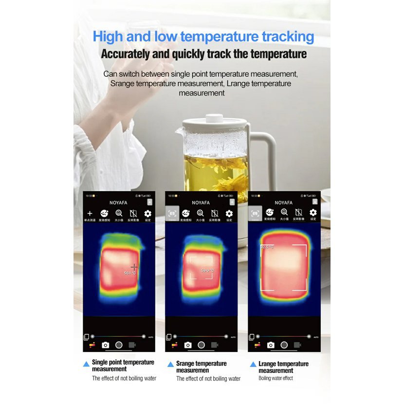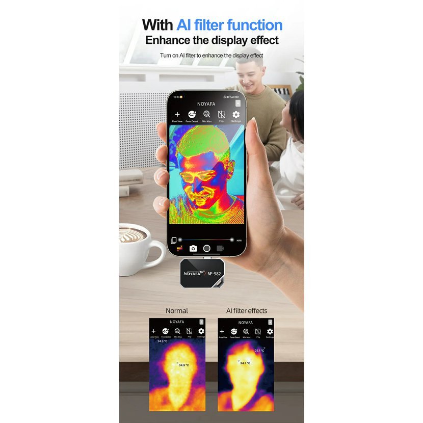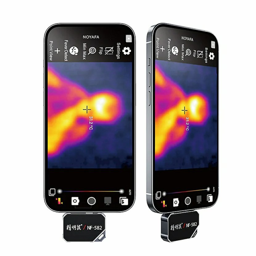 Termokamera W-Star WSNF582 je kompaktní a lehký nástroj, který přináší profesionální funkce do každodenní praxe. Je vybavena infračerveným senzorem s rozlišením 80 × 62 px, který patří do standardní kategorie termokamer pro orientační měření. Tento počet bodů je plně dostačující pro rychlou kontrolu – například při hledání přehřátých součástek, úniků tepla nebo při kontrole izolace. Výsledný obraz se zobrazuje v HD kvalitě na displeji telefonu, takže působí přehledně a rozhodně ne jako pár kostiček. Díky AI filtru pro vylepšení obrazu navíc získáte čistší detaily a vyšší kontrast i při náročnějších měřeních. Kamera podporuje měření teplot v rozsahu +20 °C až 500 °C s přesností ±2 °C nebo ±2 %, takže ji využijí technici, inspektoři i domácí uživatelé. Nabízí 9 barevných palet a možnost záznamu fotografií i videí. Díky mobilní aplikaci NOYAFA Thermal Vision lze snadno nastavovat parametry, ukládat záznamy a sledovat historická data.