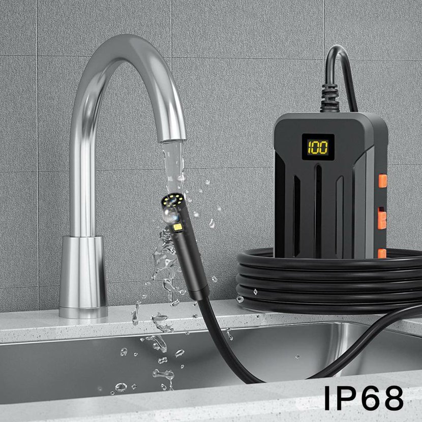Průmyslový endoskop s duální kamerou (přední + boční), 5m polotuhý kabel, velký 4,3" LCD displej, rozlišení 1920 × 1080 (Full HD), voděodolnost IP67, ukládání na SD kartu – bez nutnosti mobilu.