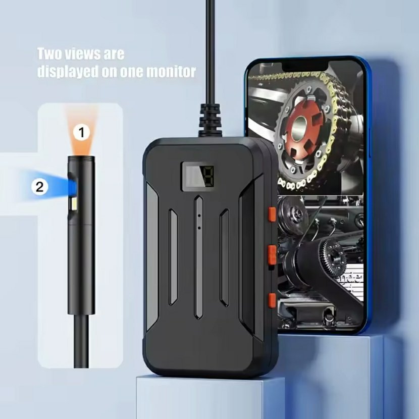 WiFi endoskop s duální 7mm kamerou a 5m polotvrdým kabelem, rozlišení Full HD 1080P, 9 LED diod, vodotěsná sonda IP68, baterie 2600 mAh s výdrží 3–4 h, kompatibilní s Android a iOS.
