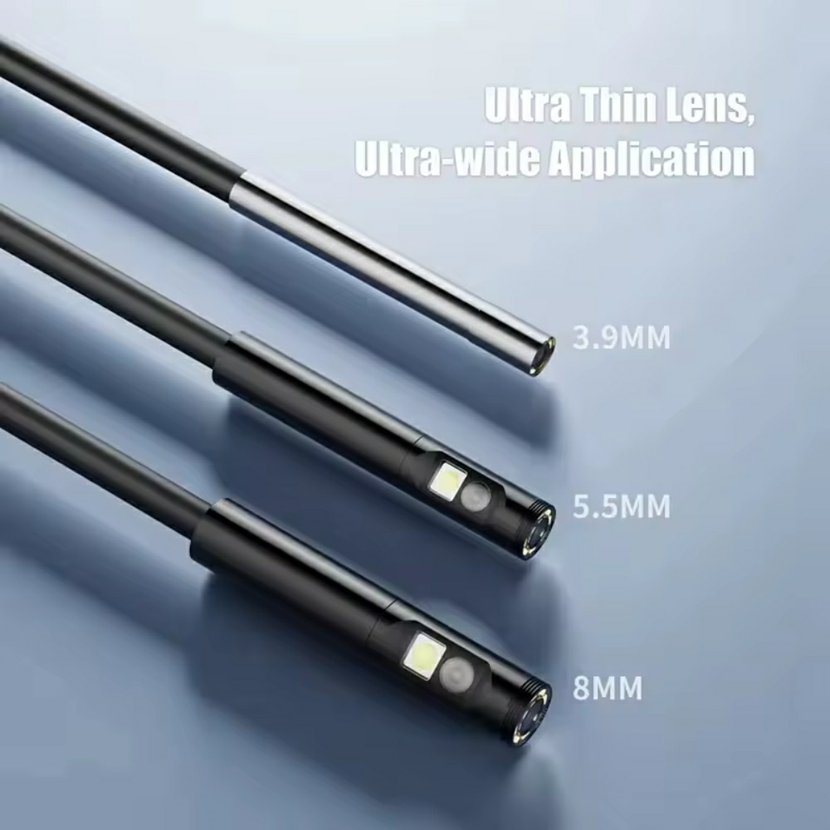 WiFi endoskop s kamerou 5,5 mm, 5m polotvrdým kabelem, rozlišením Full HD 1080P, 6 LED diodami a vodotěsností IP67. Kompatibilní s Android a iOS, výdrž baterie 3–5 h.