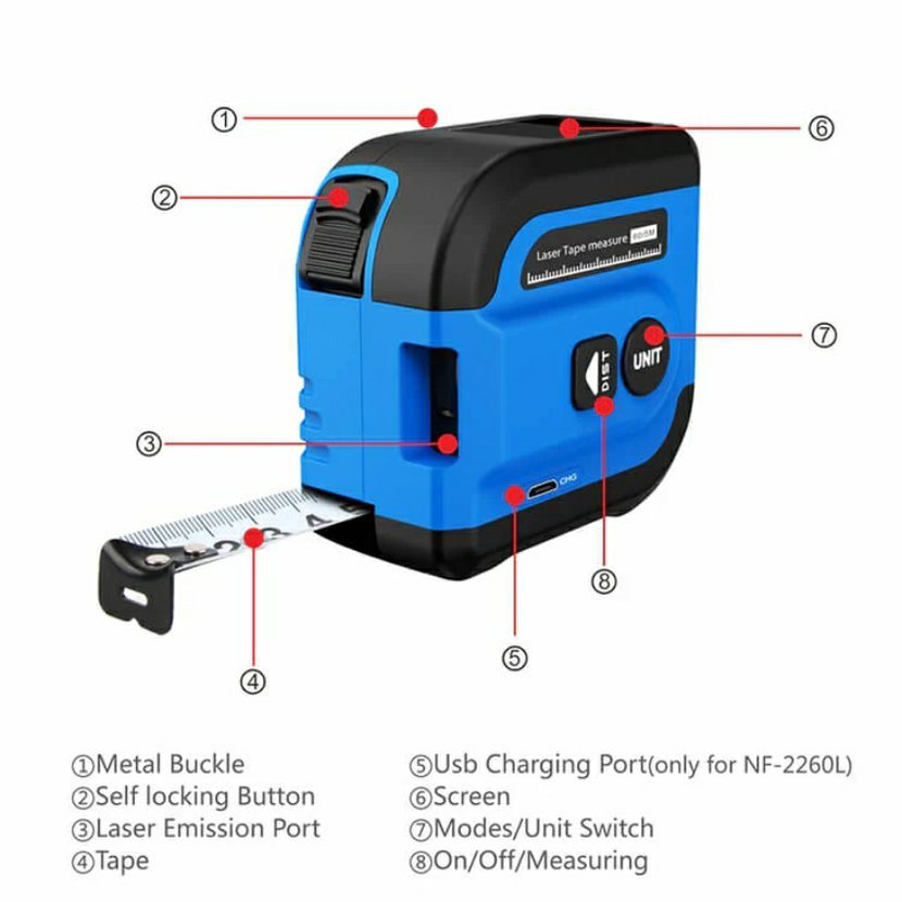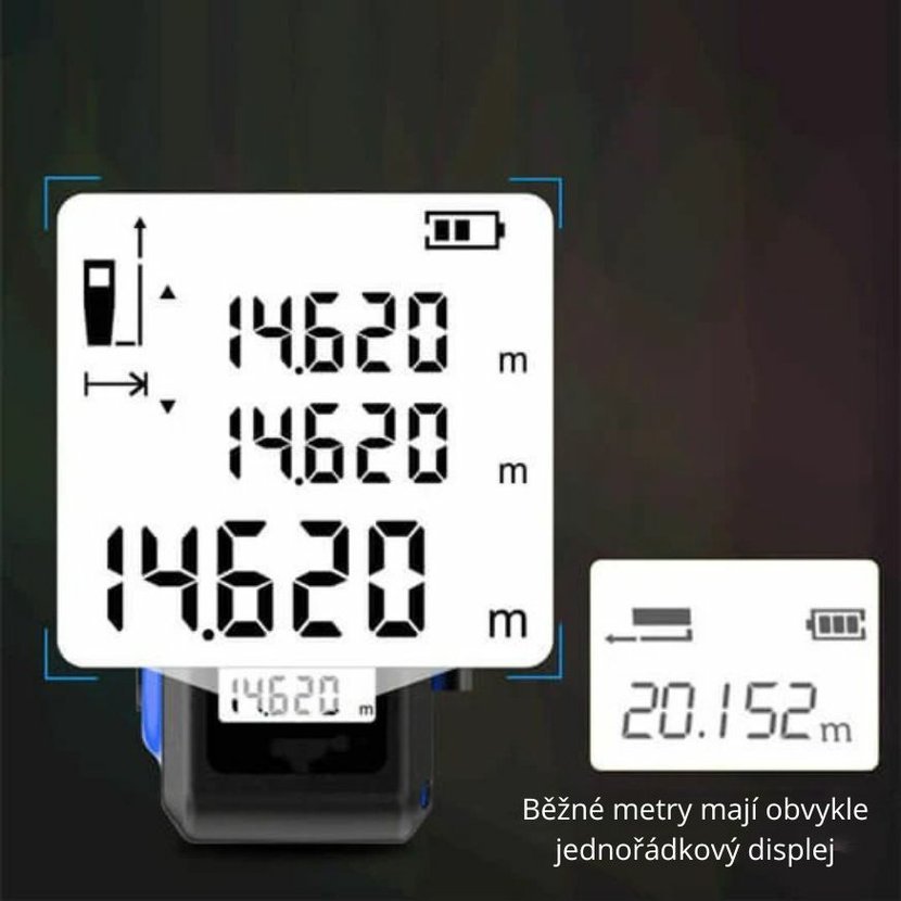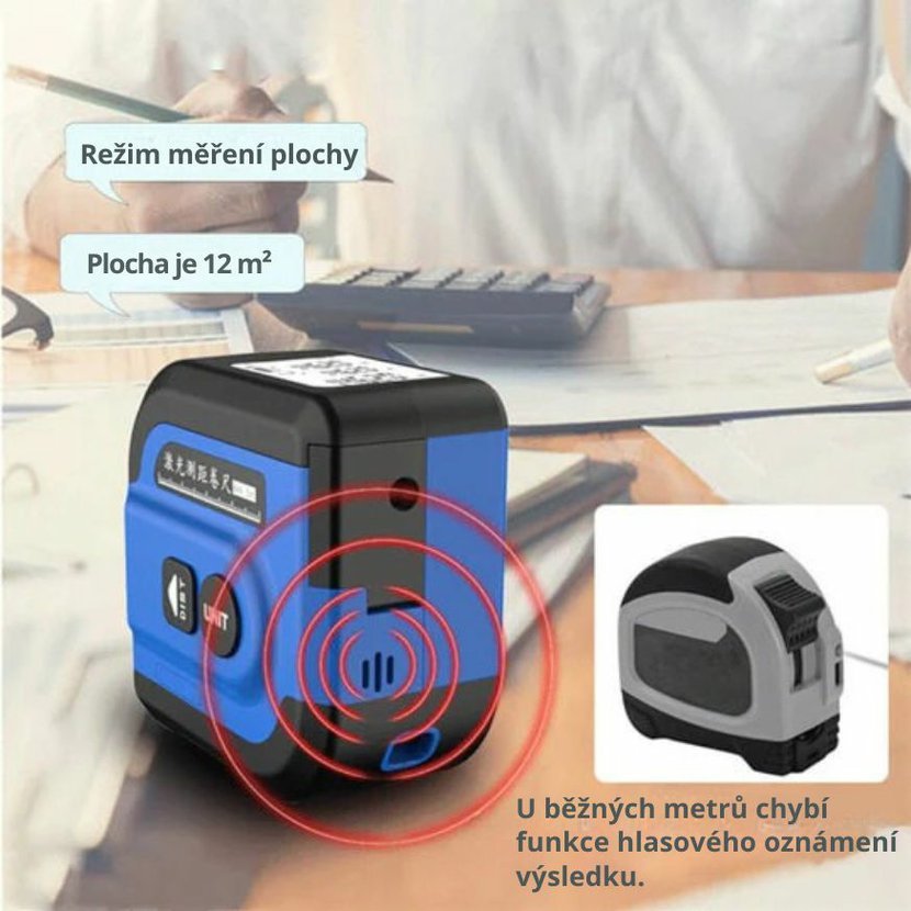 Laserový dálkoměr WSNF-2260L spojuje přesné laserové měření až na 60 m s praktickým 5m ocelovým svinovacím metrem v jednom kompaktním těle. Nabízí intuitivní ovládání, vysokou přesnost ±2 mm, podporu výpočtu plochy i objemu a navíc hlasové oznámení naměřené hodnoty v angličtině. Vestavěná dobíjecí baterie zajišťuje pohodlný provoz bez nutnosti výměny článků. Přístroj je vhodný pro řemeslníky, stavební firmy i domácí uživatele, kteří chtějí měřit rychle, jednoduše a spolehlivě.