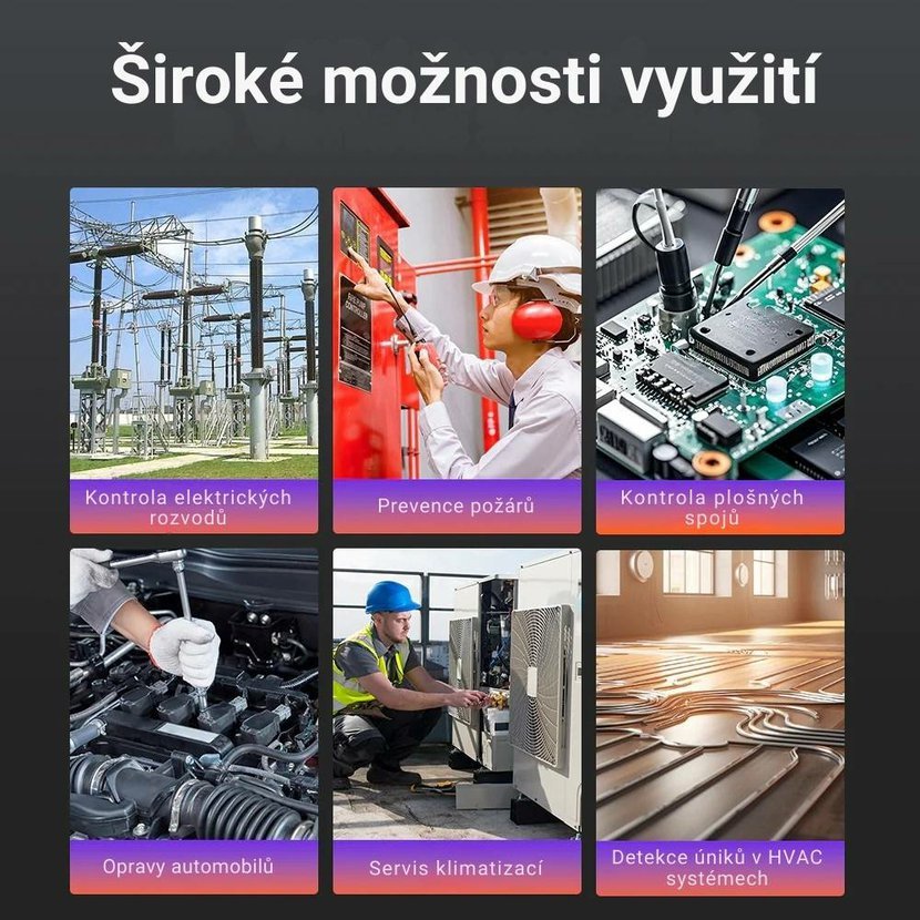 Pokud se vám „něco děje“ v podlaze, rozvaděči nebo ve stěně a potřebujete rychle určit problémové místo, termokamera během několika sekund zobrazí teplotní rozdíly. Místo zbytečného rozebírání pracujete cíleně a efektivně.