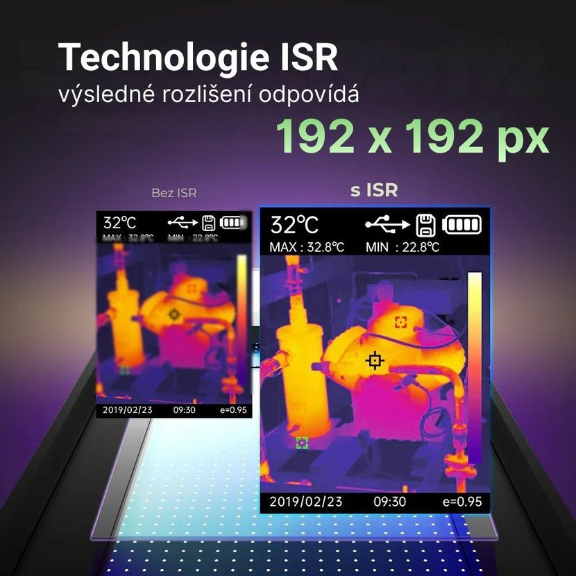 - IR rozlišení 192 x 192 px (interpolované) - základní senzor 96 x 96 px